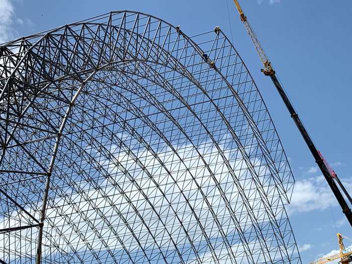 (2)网架加工前应对现场尺寸进行复测,确认无误后方可进行加工、安装;网架制作、运输、安装应遵守《空间网格结构技术规程》JGJ7-2010、《钢网架运城螺栓球节点》JG/T 10-2009、《钢网架运城螺栓球节点用高强度螺栓》 GB/T 16939-2016、《运城钢结构运城工程运城施工规范》 GB50755-2012、《运城钢结构运城工程施工质量验收标准》 GB50205-2020。