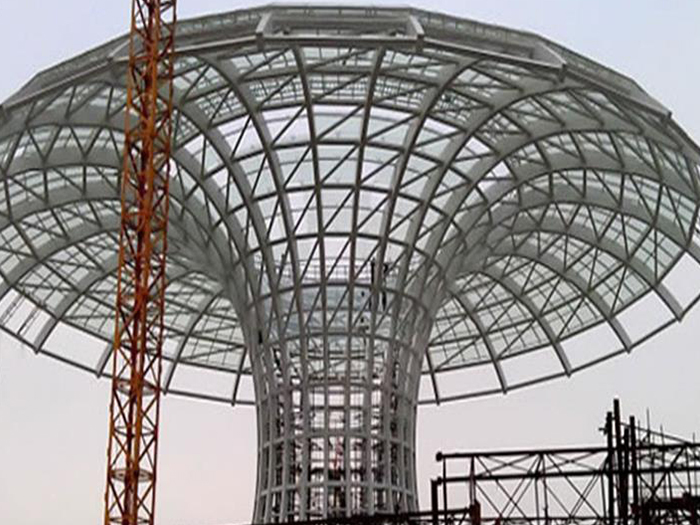 二、球形网架结构因其结构新颖,受力合理,自重轻、用钢量低等优点。如大型体育场馆球形运城螺栓球网架、公共场馆球形网架、电厂运城螺栓球网架、水泥工业球形网架、仓储物流球形网架、运城干煤棚工业球形网架、运城收费站运城加油站球形网架、展览中心、影剧院、商场、航站楼、候车厅、工厂运城车间、仓库、电视塔等球形螺栓球节点网架。国内球形网架结构主要分为:运城焊接球节点网架及螺栓球节点网架两种。螺栓球节点网架其构件工厂内加工量较大,现场安装便捷,适用于现场工期紧,运城施工条件、用电量受制约,网架形状复杂、运城杆件定位困难的异形结构。螺栓球节点球形网架系统基本由运城杆件、螺栓球、支撑支座等组成。按照节点形式可分为交叉运城桁架体系、四角锥体系、三角锥体系等。支撑方式多为固定支座支撑。对于大面积、大跨度及有特殊受力或伸缩要求的网架结构可采用橡胶支座、滑移支座、球铰支座等支撑形式,以满足结构自身的受力稳定、均衡,便于内力释放等设计要求。